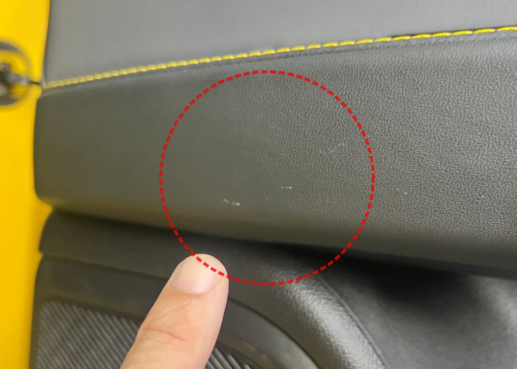 施工箇所はステアリング、前後のシート、ドアの内張り、そしてフロアマットまで、車内全体を幅広くカバー。コンソールやひじ置き、プラスチック素材ごとに最適な手法で塗布し、細部まで保護層を形成していきます。塗漏れ、塗ムラが無いように丁寧にコーティング塗布をおこなっていきます。