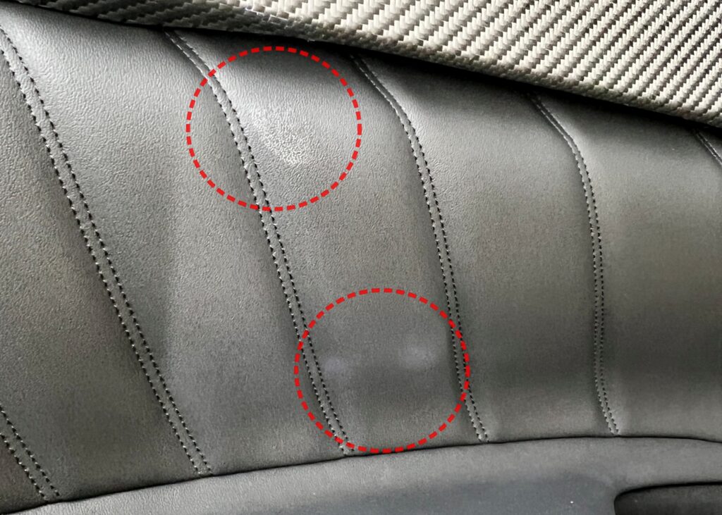 「特にオーナー様が気にされていたのが、繊細なレザーへの乗降時の擦れ傷と、皮脂や油分による白シミ・テカリでした。マセラティのグレカーレに使用される最高級レザーは、その柔らかさゆえにダメージを受けやすい側面もあります。マジベルインテリアコートは、レザーの繊維深くまで浸透し、目に見えない保護層を形成。これにより、物理的な擦れに対する耐性を高めるだけでなく、油分の浸透を強力にブロックします。