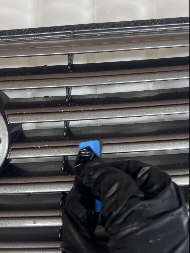 施工後は、グリルの艶・立体感・高級感が際立ち、バンパーモールと合わせて、